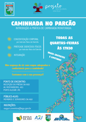 A Escola da AGU no Estado do Rio Grande do Sul informa que estão abertas as inscrições para a Caminhada no Parcão - Introdução a prática de caminhada monitorada.