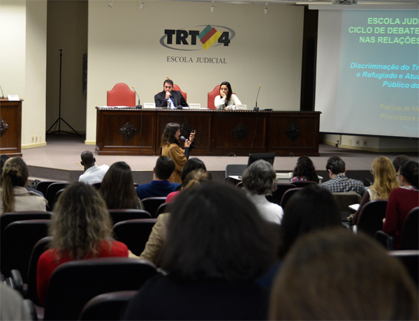 O segundo módulo do Ciclo de Debates "Discriminação nas Relações de Trabalho" também ofereceu palestras sobre a discriminação de imigrantes e refugiados. Para falar sobre o assunto, foram convidadas a procuradora do Trabalho Patrícia Sanfelice e a advogada e professora Laura Sartoretto. A atividade também teve o depoimento do presidente da Associação dos Senegaleses de Porto Alegre, Mor Ndiaye. Ele falou sobre as dificuldades que os imigrantes enfrentam na Capital, principalmente devido à barreira linguística.