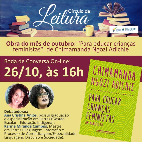 13.10.2020Evento da Ejud4: Círculo de Leitura do TRT4 - 5º Encontro - "Para educar crianças feministas", de Chimamanda Ngozi Adichie -