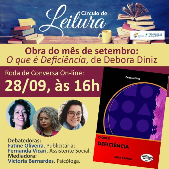 21.09.2020Evento da Ejud4: Círculo de Leitura do TRT4 - 4º Encontro - "O que é Deficiência", de Debora Diniz -