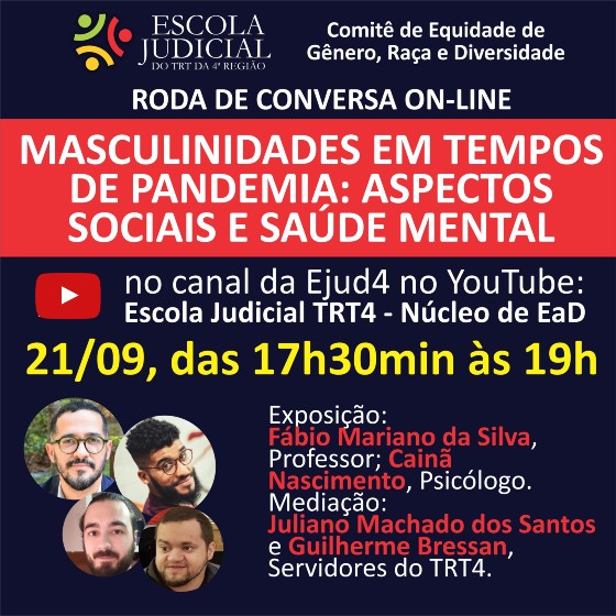 17.09.2020Evento da Ejud4: Roda de Conversa On-line - Masculinidades em Tempos de Pandemia: Aspectos Sociais e Saúde Mental -