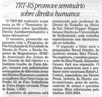 27.05.2008Evento da Escola Judicial do TRT-RS é divulgado no JC -