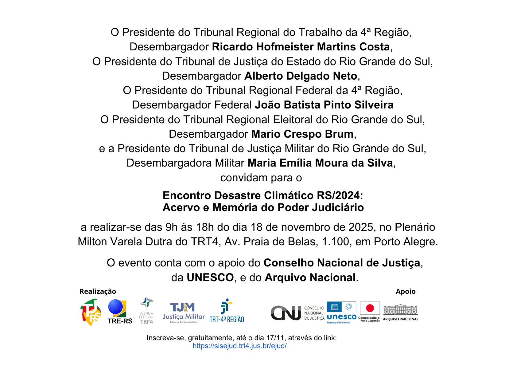 Encontro Desastre Climático 2024/RS: Acervo e Memória do Poder Judiciário (18/10/2025)