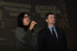 A sessão de lançamento foi assistida por aproximadamente 200 pessoas. O TRT-RS contou com a parceria da Caixa de Assistência dos Advogados para a realização do evento, organizado pelo Memorial e pela Escola Judicial. A iniciativa também teve o apoio da Associação dos Magistrados da Justiça do Trabalho da 4ª Região (Amatra IV), da Seccional Gaúcha da Ordem dos Advogados do Brasil (OAB/RS), da Associação Gaúcha dos Advogados Trabalhistas (Agetra), da Sociedade dos Advogados Trabalhistas de Empresas do RS (Satergs), da Associação Brasileira dos Advogados Trabalhistas (Abrat) e da Escola Superior da Advocacia (ESA). Antes do início da sessão, os presentes foram saudados pela presidente do Tribunal, desembargadora Beatriz Renck, e pelo diretor-tesoureiro da Caixa de Assistência dos Advogados, Gustavo Juchem.