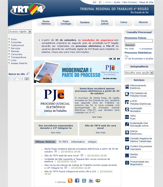 O site do TRT da 4ª Região ganhou, na noite dessa segunda-feira (22), um novo layout.