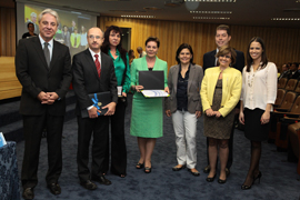 O Tribunal Regional do Trabalho da 4ª Região foi agraciado, nesta quinta-feira (24), com a medalha “Mérito Funcional”, pelo sucesso obtido na implantação do sistema e-Gestão no segundo grau. A distinção foi entregue pelo corregedor-geral da Justiça do Trabalho, ministro Antônio José de Barros Levenhagen, à presidente do TRT4, desembargadora Maria Helena Mallmann, à corregedora regional, desembargadora Cleusa Regina Halfen, e ao juiz Ricardo Fioreze, que coordena o grupo gestor regional do e-Gestão. Os magistrados receberam a medalha em nome da equipe do projeto. A solenidade aconteceu na sede do Tribunal Superior do Trabalho (TST), em Brasília. Os outros Regionais que concluíram a tarefa também foram homenageados.