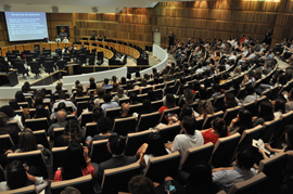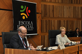 Reintroduzir a dimensão humana no trabalho, comunicar com clareza as estratégias da empresa aos empregados, conviver com conflitos para que as pessoas possam falar e discordar, além de acabar com o elitismo nas empresas. Estas são algumas recomendações da psiquiatra, psicanalista, psicoterapeuta familiar e professora da Universidade de Paris, Marie-France Hirigoyen, para diminuir o assédio moral no ambiente de trabalho. A especialista francesa palestrou na tarde desta sexta-feira (20/04) no novo plenário do Tribunal Regional do Trabalho da 4ª Região (RS). O evento foi promovido pela Escola Judicial do TRT4 e lotou o espaço recém-inaugurado, que tem capacidade para 470 pessoas.