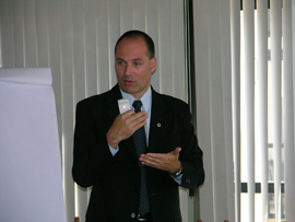 As palestras iniciadas pelo módulo administrativo, no dia 28 de outubro, tiveram sequência na quinta-feira (03/11), já com foco técnico. Nessa segunda parte, ocorrem cinco apresentações de servidores que atuam ou que já atuaram em varas trabalhistas, ressaltando-se a importância da tutoria interna. O assistente administrativo da Vice-Presidência, Giovane Brzostek, apresentou a estrutura do Foro Trabalhista e o fluxograma do processo. Em seguida, a chefe de gabinete da Vice-Presidência, Marguit Renate Schneider, e o Diretor do SDF de Canoas, Sandro da Silva Lima, apresentaram uma análise do processo modelo, segundo a Consolidação dos Provimentos da Corregedoria Regional (CPCR). No final da tarde, foi realizada visita a duas Varas do Trabalho de Porto Alegre. Hoje, no último dia do programa, o treinamento começou pelo software Infor, abordado pela assistente de diretor de secretaria da 14ª VT de Porto Alegre, Daniella Antanavicius Fernandes Souza, e a assistente administrativa lotada na Corregedoria, Silvana Pereira Fensterseifer. O treinamento será finalizado com dinâmicas sobre atendimento ao público, conduzidas pelas servidoras Daniella e Silvana. Além de palestras e dinâmicas, ainda há uma esquete teatral, bem como uma parte prática de atividades desenvolvidas em Secretaria.