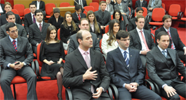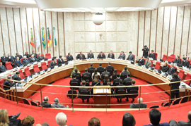 O juiz Francisco Rossal de Araújo, auxiliar da Presidência para a gestão estratégica, representou a Justiça do Trabalho do Rio Grande do Sul na posse de 20 juízes substitutos (foto ao lado) do Tribunal Regional Federal da 4ª Região. A cerimônia ocorreu na tarde desta segunda-feira (6) no plenário do TRF4, sendo conduzida pelo presidente da Instituição, desembargador Vilson Darós. A 4ª Região Federal abrange Rio Grande do Sul, Santa Carina e Paraná, estados onde os novos membros irão atuar.