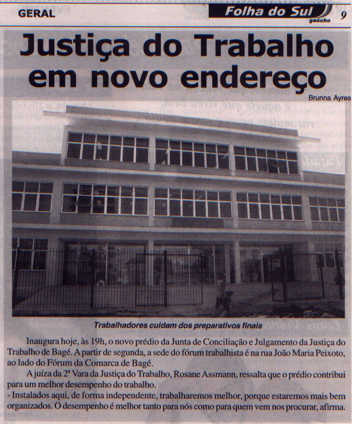 Folha do Sul: Justiça do Trabalho em novo endereço