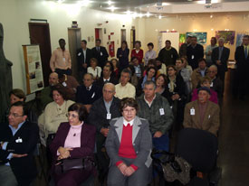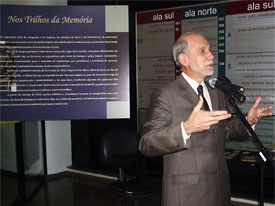 Depois, se manifestaram pela ordem a Desembargadora aposentada Magda Barros Biavaschi (integrante da Comissão do Memorial) e o Desembargador João GHisleni Filho (Presidente do Tribunal). Em seguida, o Presidente Ghisleni e o Presidente do Sindicato dos Trabalhadores em Empresas Ferroviárias do RS, João Edacir Calegari Morais, descerraram a fita inaugural da exposição. Após, a Oficina de Improvisação Teatral do TRT4 apresentou um esquete, com a participação dos servidores Antonio Ransolin (Memorial) como narrador, Antonio Carlos Dantur Buaes (Segurança) e Bruna Canavezi de Oliveira (3ª VT) como atores e Carolina Wist (SRH) diretora da peça.