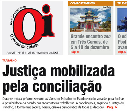 Matéria com chamada de capa, publicada no Jornal Oi de hoje (28).