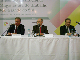 O Ministro Maurício Godinho Delgado, do Tribunal Superior do Trabalho, palestrou hoje (10) no "III Encontro Institucional da Magistratura do Trabalho do Rio Grande do Sul". Além de abordar temas como celeridade processual e a relação entre a garantia dos direitos trabalhistas e o "custo Brasil", o magistrado defendeu a redução da jornada de trabalho de 44 para 40 horas por semana.