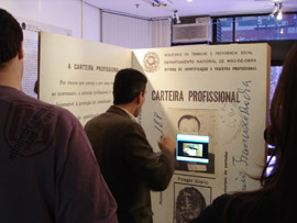 Ciceroneados pelos servidores Elton Decker e Paulo Roberto Guadagnin, os universitários da disciplina Psicologia do Trabalho II e sua professora, Jaqueline Tittoni, visitaram a exposição “Documento é Legal – Carteira de Trabalho”, organizada pelo Memorial. Mais tarde, na sala de licitações do TRT, foram recebidos pelo Presidente, Desembargador João Ghisleni Filho, que explicou diversos aspectos relativos à atuação da Justiça Laboral.