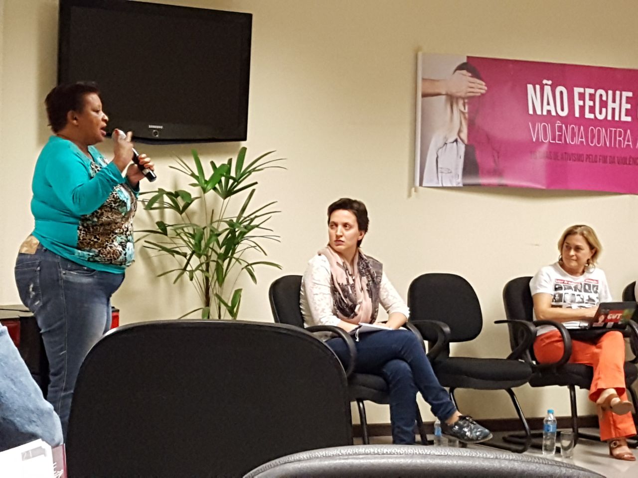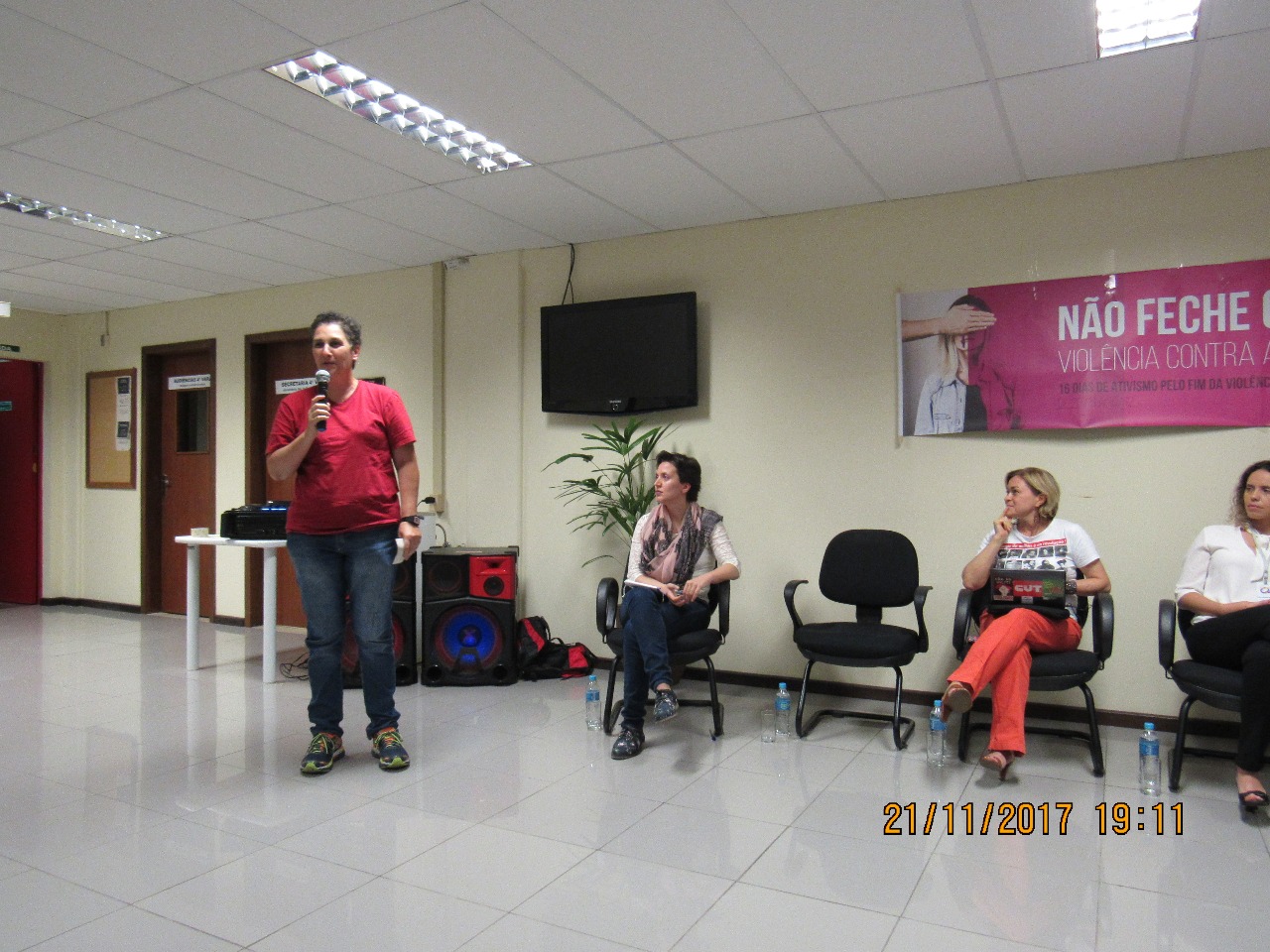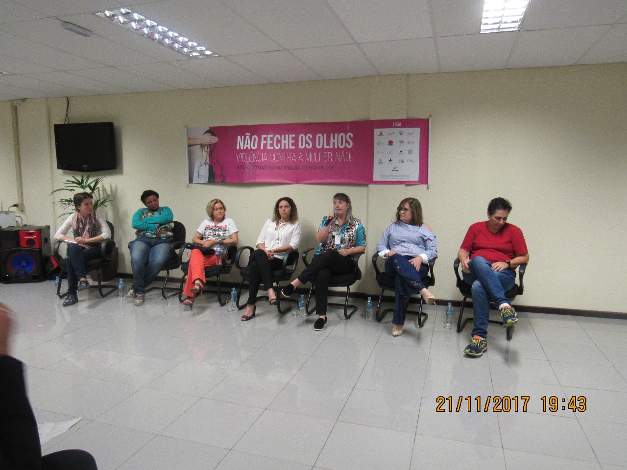 Juntamente com a parlamentar Monica, participaram da atividade como debatedores representantes da ONG Themis, de Porto Alegre, do Sintrajufe, do Creas de Taquara e da Casa Jacobina Meuer, de Sapiranga, que abriga mulheres que sofreram violência. Além dos painelistas, foi convidada a ONG Vida Breve, que colaborou com o Foro de Taquara na exposição fotográfica Amores Perfeitos. Ela apresentou o resultado do seu trabalho com dança de crianças e adolescentes, bem como um poema sobre o tema da violência contra a mulher. O grupo teatral taquarense Cheiro de Chuva também apresentou um esquete sobre o assunto.
