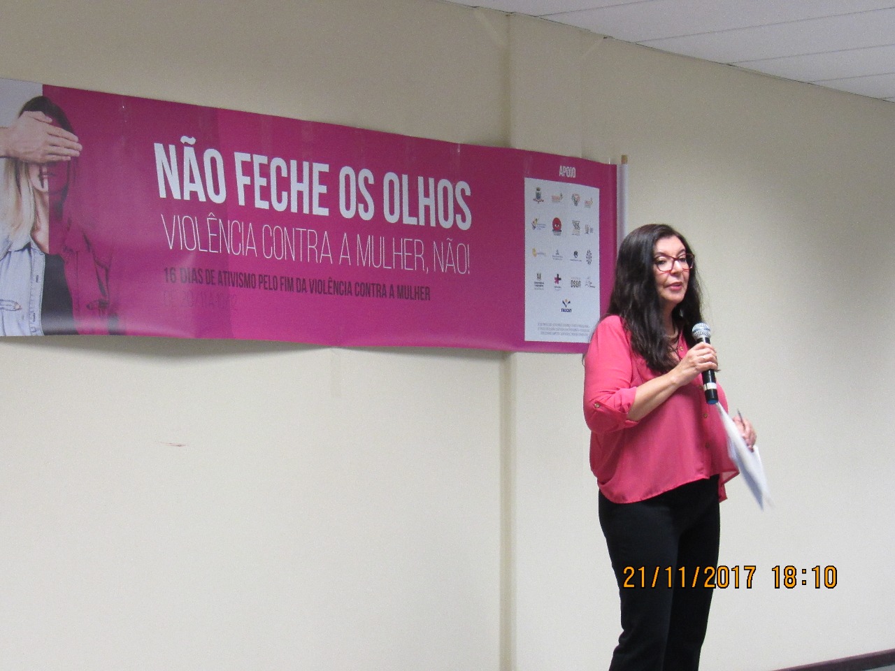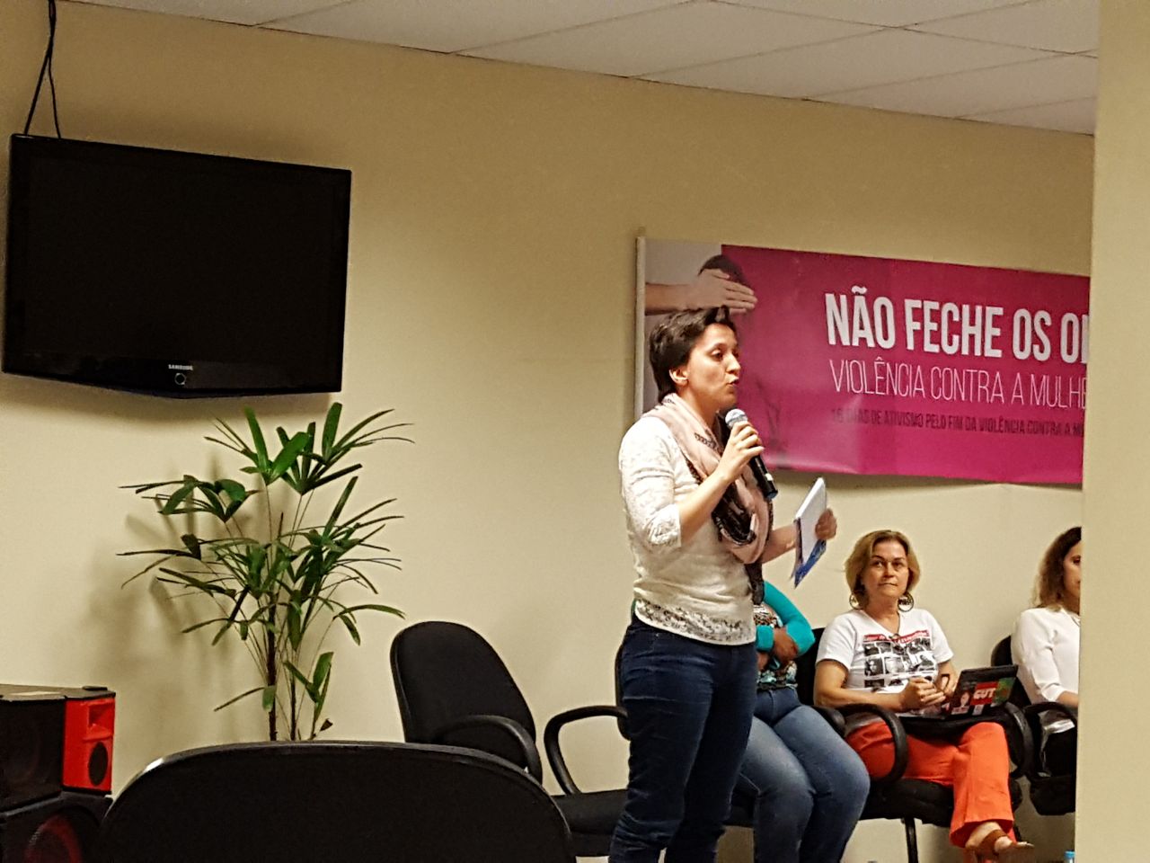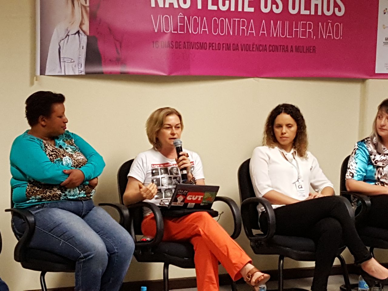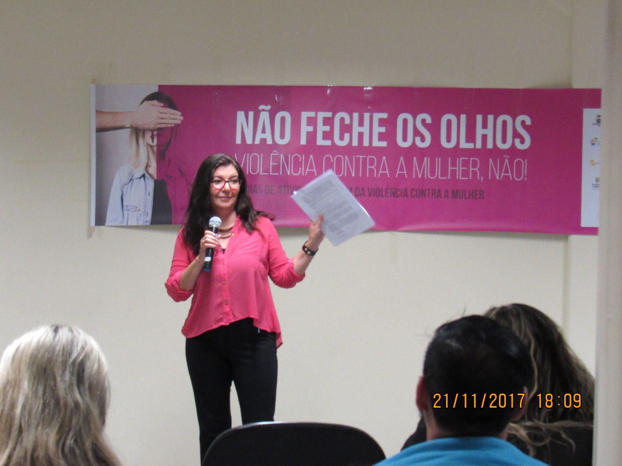 Juntamente com a parlamentar Monica, participaram da atividade como debatedores representantes da ONG Themis, de Porto Alegre, do Sintrajufe, do Creas de Taquara e da Casa Jacobina Meuer, de Sapiranga, que abriga mulheres que sofreram violência. Além dos painelistas, foi convidada a ONG Vida Breve, que colaborou com o Foro de Taquara na exposição fotográfica Amores Perfeitos. Ela apresentou o resultado do seu trabalho com dança de crianças e adolescentes, bem como um poema sobre o tema da violência contra a mulher. O grupo teatral taquarense Cheiro de Chuva também apresentou um esquete sobre o assunto.