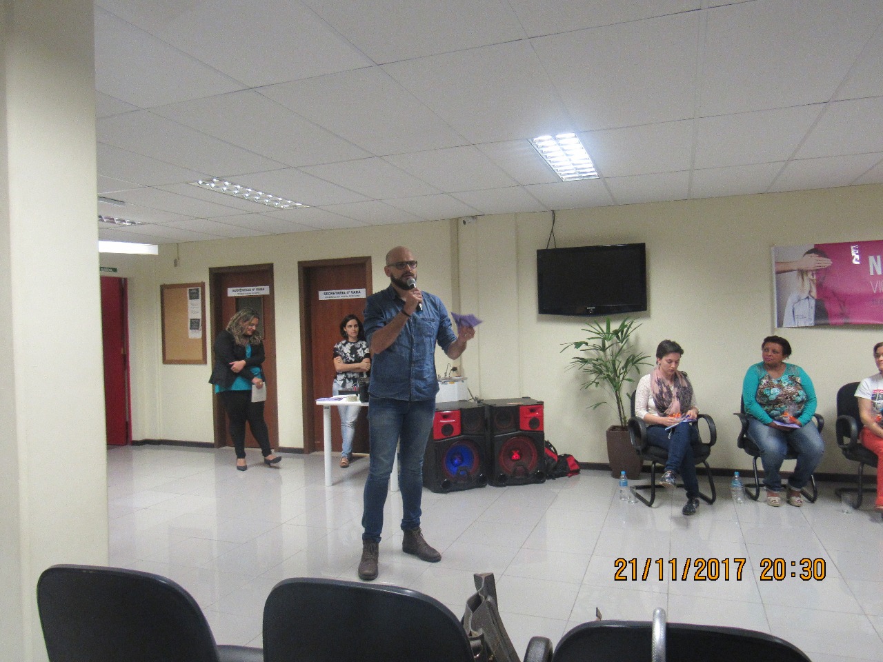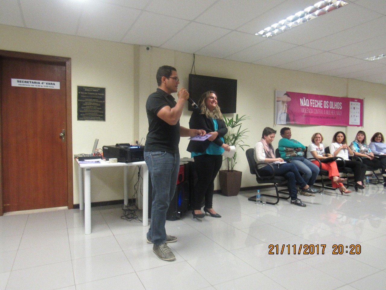 O Foro Trabalhista de Taquara foi palco de uma roda de conversa sobre o fim da violência contra a mulher, reunindo servidores, magistrados e representantes de diversas entidades atuantes na área. A atividade, ocorrida no dia 21 de novembro, fez parte da programação da campanha mundial “16 dias de ativismo pelo fim da violência contra a mulher”. O convite para a participação na campanha partiu da vereadora Monica Faccio, em virtude da criação na Câmara de Vereadores da Frente Parlamentar de Homens pelo Fim da Violência contra Mulher, surgida no início deste ano. O evento também teve o apoio, no planejamento e na realização, do Comitê Gestor de Equidade de Gênero, Raça e Diversidade do TRT-RS.