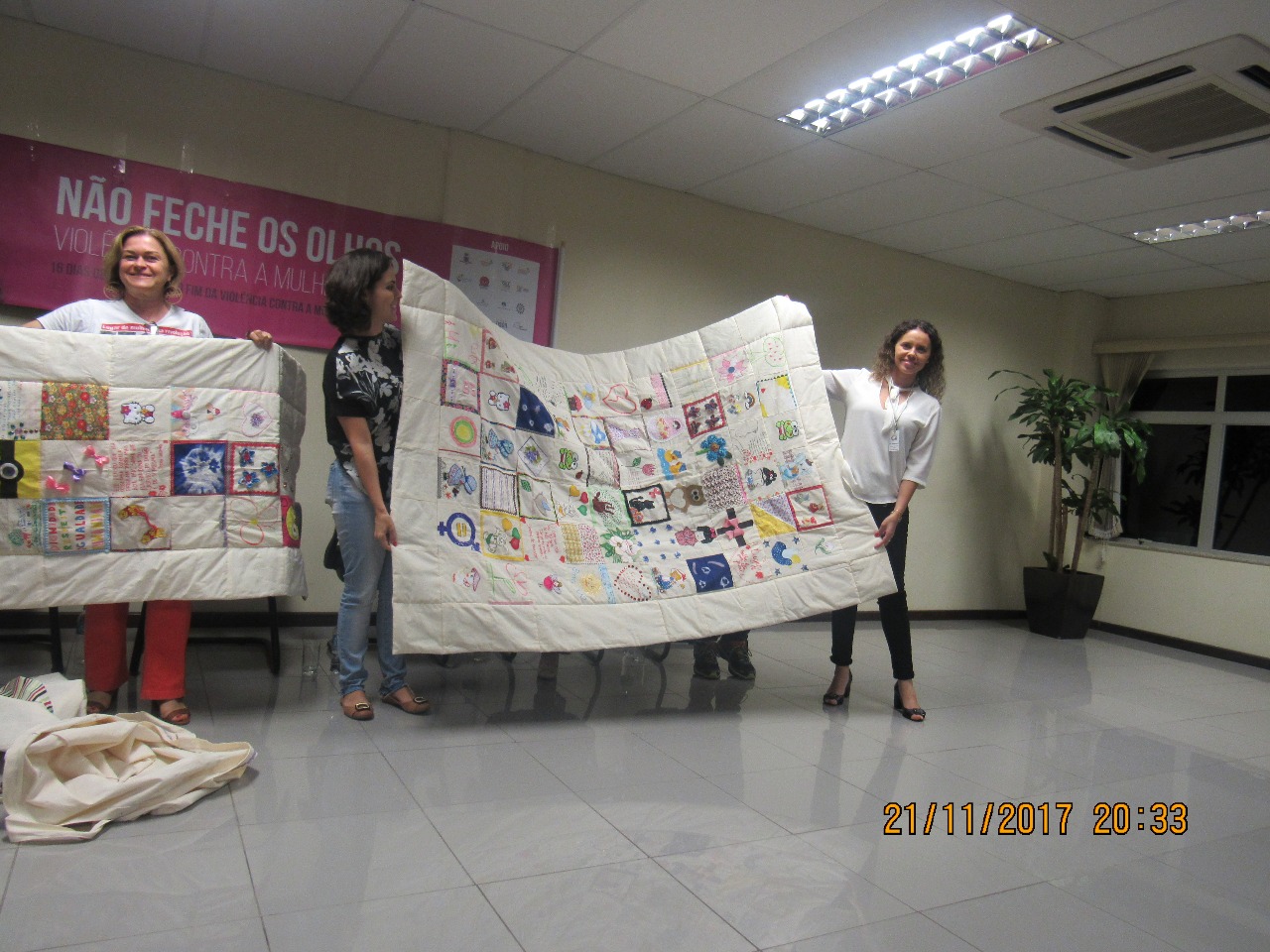 Ao final, foi feita a doação de colchas de retalhos elaboradas pelas servidoras e magistradas do Foro, num trabalho de equipe que demostrou o engajamento, a solidariedade, e o espírito de equipe do Foro de Taquara. “É muito gratificante fazer parte dessa construção e acredito ser muito importante a Justiça do Trabalho se integrar às atividades com pautas tão caras como a luta pelo fim da violência contra a mulher, reforçando e pondo em prática a política de equidade adotada pelo TRT gaúcho. Isso mostra que estamos inseridos na sociedade para além dos processos judiciais”, refletiu o servidor Diogo da Silva Corrêa, um dos organizadores do evento.