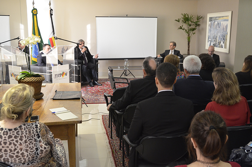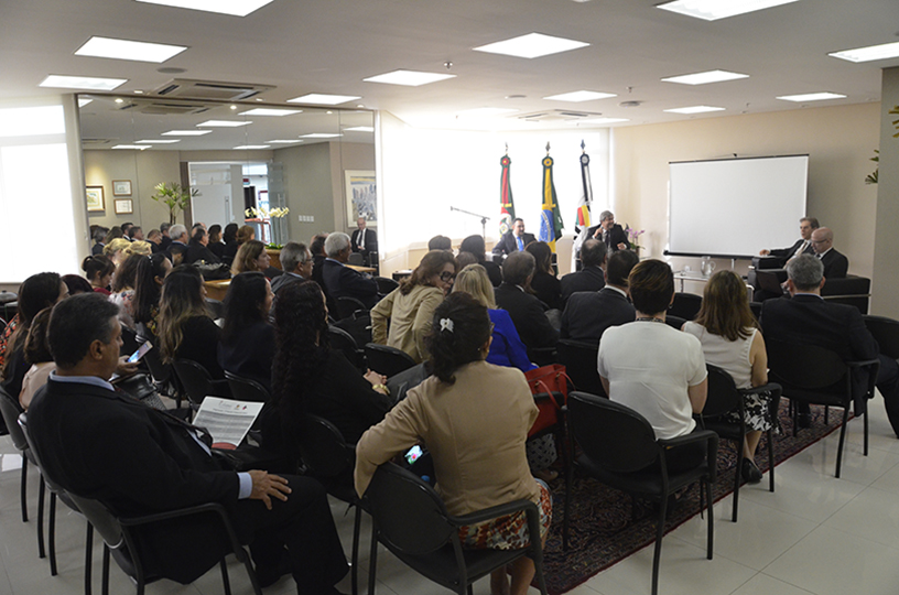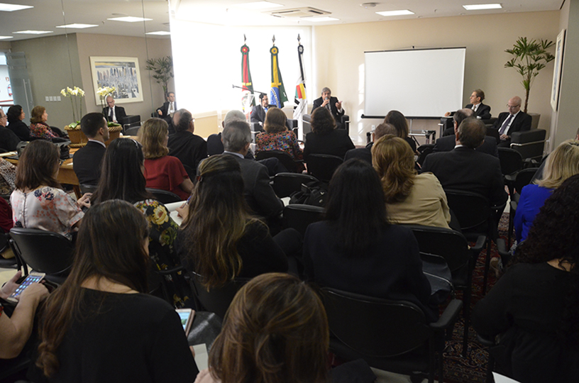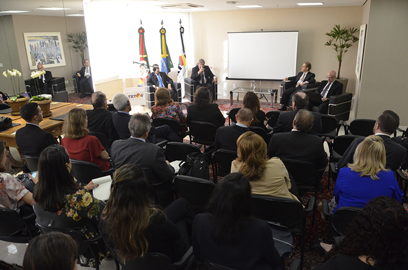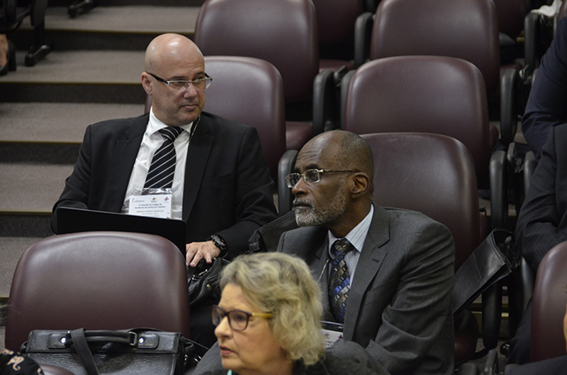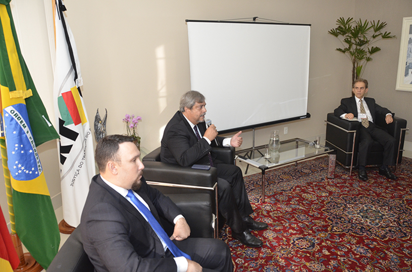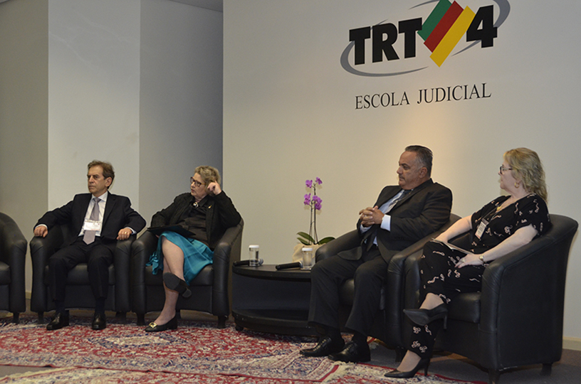 Na abertura da reunião, estiveram presentes a presidente do TRT-RS, desembargadora Vania Cunha Mattos, a ouvidora da instituição, desembargadora Laís Helena Jaeger Nicotti, o presidente do Colégio de Ouvidores da Justiça do Trabalho, desembargador Gentil Pio de Oliveira, e o presidente do Colégio de Ouvidores da Justiça Estadual, desembargador Altair de Lemos Júnior.