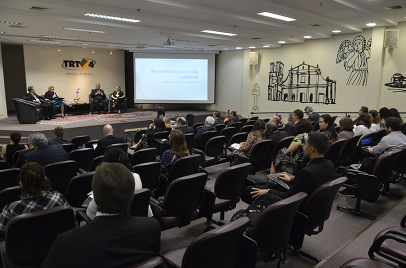 Começou, na manhã dessa quinta-feira (26/4), a 17ª Reunião Ordinária do Colégio de Ouvidores da Justiça do Trabalho (Coleouv). Neste ano, o evento ocorre no Auditório Ruy Cirne Lima, na Escola Judicial do Tribunal Regional do Trabalho da 4ª Região (RS). A reunião, que se estenderá até a próxima sexta-feira (27/4), é realizada também em apoio ao projeto ElesporElas, da Organização das Nações Unidas (Onu), mais conhecido internacionalmente por HeforShe, que promove ações voltadas à equidade de gênero. Ao longo do evento, serão oferecidas palestras e outras atividades voltadas para a discussão e aperfeiçoamento das ouvidorias do Judiciário Trabalhista.
