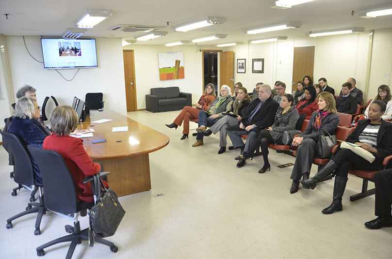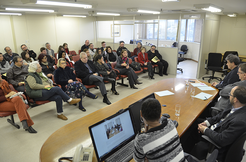 A presidente do TRT-RS, Vania Cunha Mattos, acompanhou toda a reunião, bem como a representante do Ministério Público do Trabalho, procuradora regional Beatriz de Holleben Junqueira Fialho, e a advogada Maria Cristina Carrion Vidal de Oliveira, presidente da Comissão Especial de Direito Sindical, da Seção Estadual da Ordem dos Advogados do Brasil (OAB/RS).