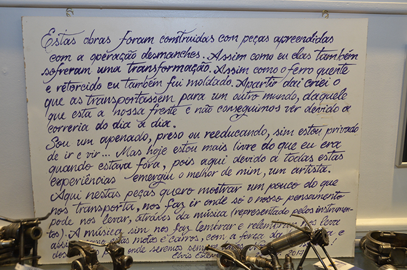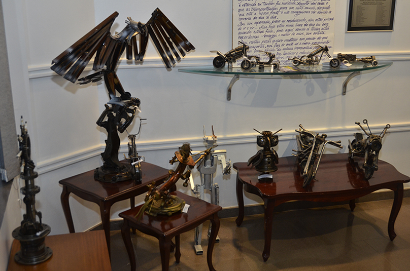 A presidente do Tribunal Regional do Trabalho da 4ª Região (RS), desembargadora Vania Cunha Mattos, participou do lançamento da exposição “Transformação Pela Arte”, ocorrido na noite dessa quinta-feira (14/6), na sede da Femargs (Fundação Escola da Magistratura do Trabalho do Rio Grande do Sul), na Capital. A mostra é promovido pela Escola de Arte da Cadeia Pública de Porto Alegre, juntamente com o projeto Direitos Humanos na Prisão, sendo composta por esculturas feitas pelos detentos, utilizando sucatas apreendidas pela Polícia em desmanches. A diretora da Femargs, juíza Valdete Souto Severo, estava presente, juntamente com coordenador do Projeto Direitos Humanos na Prisão, o sociólogo Celso Rodrigues.