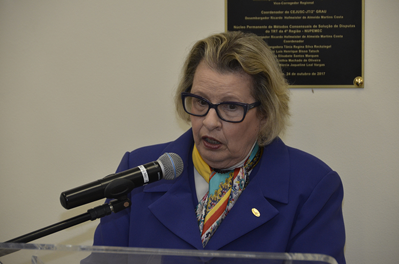 Começou, nesta segunda-feira (17/9), a 8ª Semana Nacional da Execução Trabalhista, que ocorre até esta sexta-feira (21/9). A abertura oficial das atividades foi realizada pela presidente do Tribunal Regional do Trabalho da 4ª Região (TRT-RS), desembargadora Vania Cunha Mattos, que enfatizou a importância de se conciliar processos em fase de execução, quando os valores a serem pagos são incontroversos. “Conciliar é preciso”, declarou, aproveitando a ocasião para elogiar a atuação do desembargador Ricardo Martins Costa à frente do Núcleo Permanente de Métodos Consensuais de Solução de Disputas (Nupemec). A presidente também homenageou seis servidores de Caxias do Sul que estão realizando curso de formação como mediadores e vieram a Porto Alegre para ajudar nas atividades de conciliação.