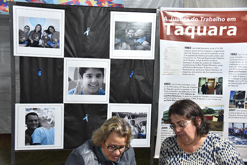 A instituição tem um estande na feira, onde servidores prestam informações a respeito do funcionamento da Justiça do Trabalho e distribuem materiais impressos, como o folder institucional, a edição especial do gibi da Turma da Mônica sobre trabalho infantil, e guias sobre direitos trabalhistas dos imigrantes. No local também está sendo exibida a exposição fotográfica “Um Novo Olhar sobre o Autismo: Diferente é o Mundo que Queremos”, que retrata famílias com integrantes autistas.