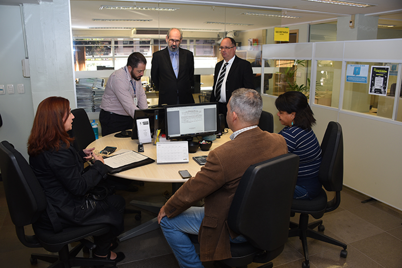 Cejusc do TRT-RS (2º Grau): Com 405 audiências agendadas até sexta-feira, o Cejusc – 2º Grau conta nesta semana com o trabalho de cinco magistrados (desembargadores Ricardo Martins Costa e Ricardo Fraga, e juízes Eduardo Vargas, Clocemar Lemes Silva e Ana Ilca Saalfeld) e 17 servidores-conciliadores. Na abertura das atividades, o coordenador do Nupemec (Núcleo Permanente de Métodos Consensuais de Solução de Conflitos), desembargador Ricardo Martins Costa, saudou os presentes no Cejusc. O magistrado destacou que a conciliação é uma vocação histórica da Justiça do Trabalho e a melhor forma de resolver os conflitos entre empregados e empregadores, visto que é uma solução construída pelas próprias partes, com a mediação de um conciliador capacitado. O corregedor regional do TRT-RS, desembargador Marçal Henri do Santos Figueiredo, esteve presente na ocasião.