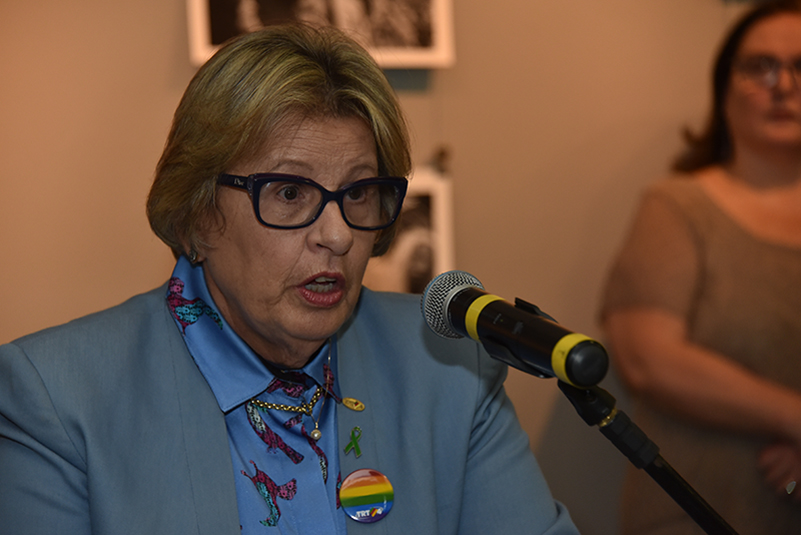 A representante do Comitê de Equidade do TRT-RS, juíza Cacilda Ribeiro Isaacsson, apresentou ao público alguns números que revelam a gravidade do problema da homofobia no país. Em 2017, o disque 100 do Ministério dos Direitos Humanos recebeu 1.720 denúncias de violações de direitos da população LGBT, e foram registradas 445 mortes decorrentes da homofobia. A magistrada também lembrou que o dia 17 de maio de 1990, a Organização Mundial de Saúde retirou a homossexualidade da lista de distúrbios mentais da classificação internacional de doenças, e a partir de então a data passou a marcar a luta contra o preconceito. "A orientação sexual não pode ser considerada doença, por se tratar de traço da personalidade do indivíduo. Se há algum tipo de doença, é da sociedade, que sofre pelo preconceito historicamente arraigado", declarou. A juíza elogiou o trabalho do fotógrafo Walter Karwatzki, e comentou que sua obra oferece ao espectador um novo olhar para combater o preconceito. "Suas fotografias mostram uma perspectiva repleta de delicadezas, que nos possibilita ver a liberdade de amar em suas múltiplas formas e expressões", elogiou.