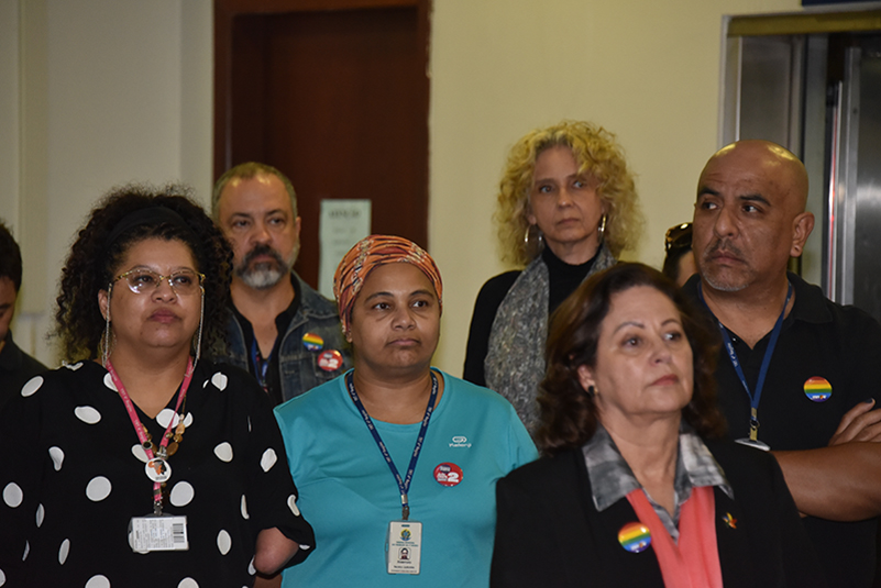 Ao final da cerimônia, o público recebeu exemplares do Manual Orientador sobre Diversidade, lançado pelo Ministério dos Direitos Humanos em 2018, e o prédio-sede do TRT-RS recebeu uma iluminação especial, com cores que fazem referência à campanha contra a homofobia e ao programa de combate ao trabalho infantil.