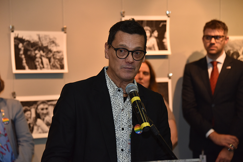 O fotógrafo Walter Karwatzki agradeceu a oportunidade de apresentar sua obra na Justiça do Trabalho. "É importante trazer esse tema para um grande espaço público, onde transitam tantas pessoas", afirmou. O artista falou sobre o desafio de fotografar a Parada LGBT sem usar as cores. "Nesse tipo de evento, a cor rouba o nosso olhar. Mas usando a fotografia em preto-e-branco, me apeguei aos pequenos gestos, a momentos que não se repetem", comentou. Ao final de sua fala, Walter lembrou-se, emocionado, do dia em que seu pai tomou conhecimento de que ele era homossexual. "Quando meu pai me percebeu gay, ele disse uma única frase: 'Saiba ser'. E foi o que procurei fazer ao longo dos anos, saber ser. Eu acho que se cada um de nós souber ser, já é uma ajuda muito grande para um mundo melhor", declarou.