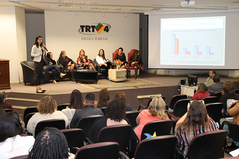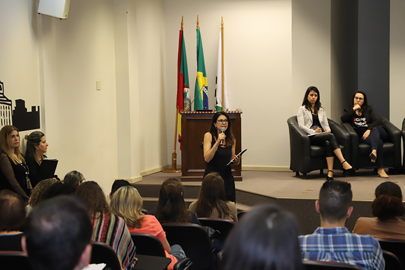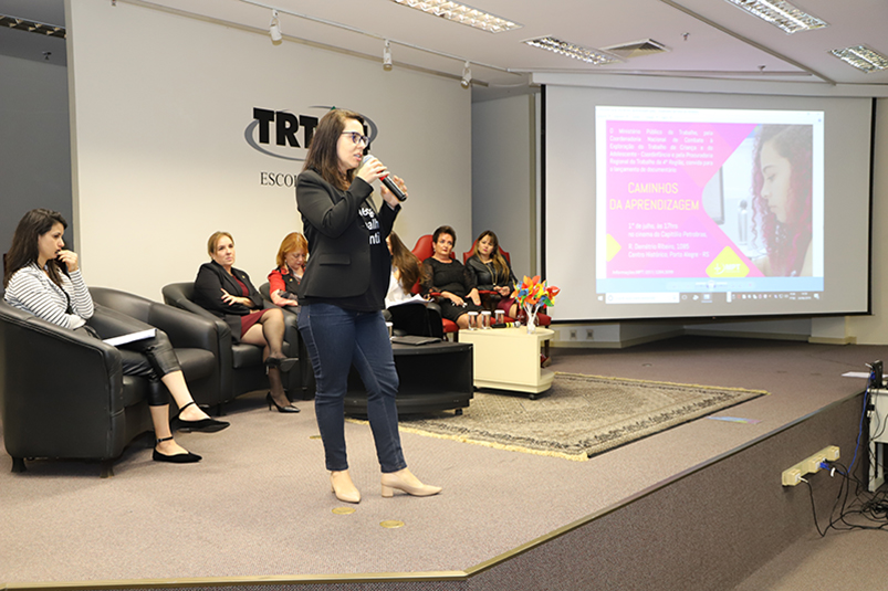 A promotora de Justiça da Infância e Juventude de Porto Alegre, Cinara Vianna Dutra Braga, apresentou o funcionamento do sistema de acolhimento institucional no município. A capital gaúcha conta atualmente com 84 casas de acolhimento, que recebem cerca de mil crianças e adolescentes que foram abandonados, são órfãos ou foram vítimas de violência. “Entre esses adolescentes, um grande percentual foi vítima de exploração sexual ou tráfico de entorpecentes, e muitas vezes são explorados no trabalho infantil pelos adultos que deveriam ser seus cuidadores. A grande maioria tem defasagem escolar. Quando completarem 18 terão que sair do espaço de acolhimento, e para onde irão?” questionou. A promotora apresentou projetos que vêm sendo realizados em rede, com a participação da Superintendência Regional do Trabalho, do MPT-RS, e o apoio do TRT-RS, que buscam preparar os jovens do sistema de acolhimento institucional por meio da inserção em vagas de aprendizagem. Também foram firmadas parcerias para o oferecimento de atendimento de saúde mental e de formação no Ensino Fundamental e Médio na modalidade de Educação de Jovens e Adultos (EJA), além do acesso a cursos técnicos. “São iniciativas que fazem parte do projeto ‘Aprendizando Porto Alegre” e buscam possibilitar que esses jovens possam efetivamente ter acesso à cidadania plena quando completarem 18 anos de idade”, explicou.