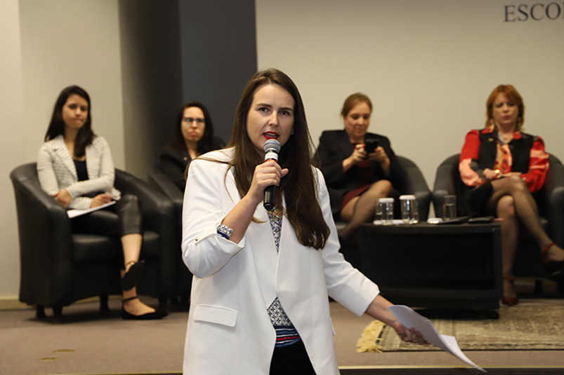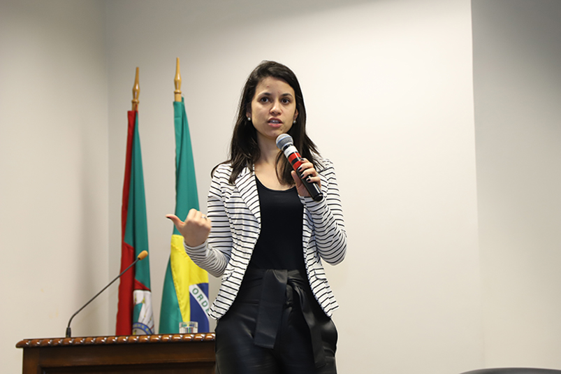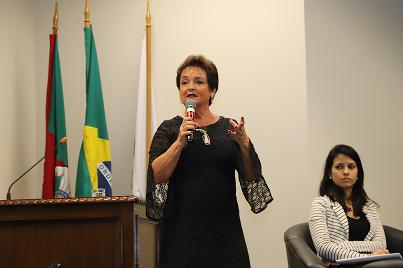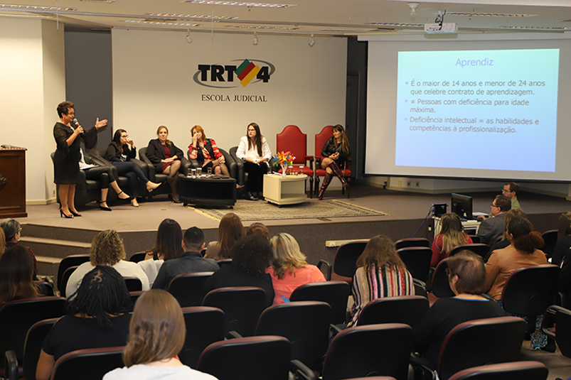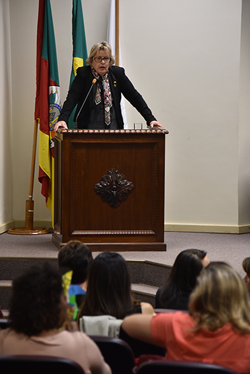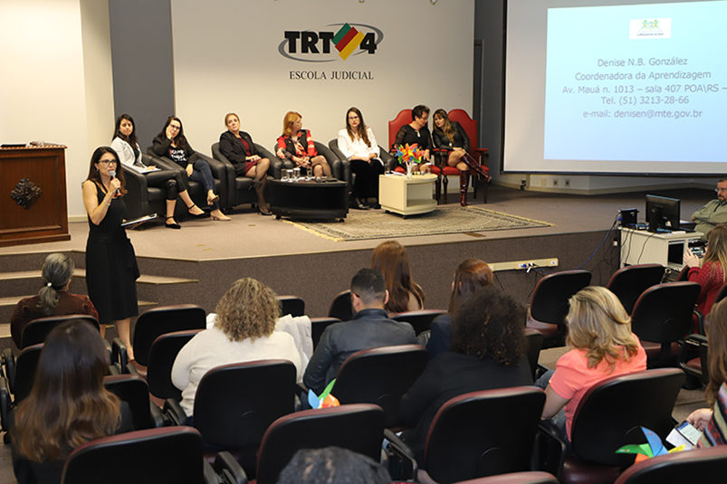 A coordenadora da Aprendizagem da Superintendência Regional do Trabalho e Emprego do Rio Grande do Sul, a auditora fiscal do Trabalho Denise González, também se manifestou. Em sua fala, Denise mostrou que existe um déficit de aprendizes no Estado: há uma demanda de 67 mil vagas, em cerca de 28 mil empresas. Entretanto, apenas 39 mil destas vagas estão preenchidas atualmente – um déficit de 28 mil jovens. Somente em Porto Alegre, o número de vagas disponíveis não preenchidas chega a 7,4 mil. “Tem lugar para todos esses problemas, todas essas demandas, todas essas deficiências”, afirmou a auditora. Denise também mostrou como a fiscalização da aprendizagem é feita e apresentou números referentes a quantidade de notificações e empresas notificadas, pois, de acordo com ela, muita gente diz não haver qualquer fiscalização em relação às tarefas exercidas pelos aprendizes. Ela terminou pedindo o apoio da plateia: “Eu conclamo a todos: sejam nossos parceiros”. “Nós temos ferramentas para encaminhar esses jovens para o mundo do trabalho. E qualificados”, concluiu.