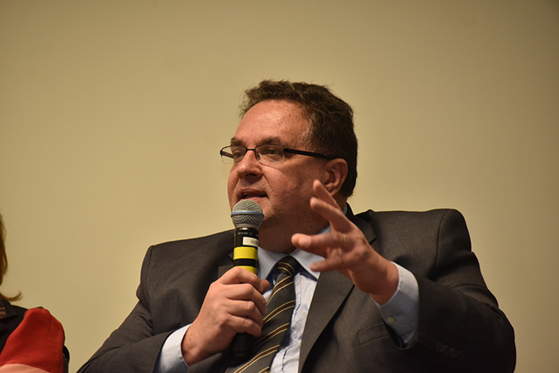 Representando a Comissão de Direitos Humanos da Ordem dos Advogados do Brasil (OAB-RS), Carmela Grüne iniciou sua participação com um dado preocupante relacionado à escolarização no Brasil: de acordo com a pesquisa Nacional por Amostra de Domicílios (PNAD) do IBGE, 40% da população de 25 anos ou mais não tem Ensino Fundamental completo. “Esse dado é extremamente alarmante num momento político em que se pensa em construir mais presídios e não se investe em educação”, pontuou Carmela. Ela também citou algumas iniciativas idealizadas ou apoiadas pela OAB que tratam do tema dos Direitos Humanos, como o “Direito no Cárcere” e o “Desmistifcando o Direito”, além da presença de voluntários na escola Antão de Faria, no bairro Bom Jesus, periferia de Porto Alegre. Ao chegarem na escola após o assassinato de um aluno no ano passado e se depararem com uma situação de extremo abandono, voluntários realizaram um projeto de arrecadação de kits escolares para os 800 alunos da instituição – no fim, nem todos os kits foram usados porque, felizmente, alguns alunos não necessitavam deles, contou Carmela.