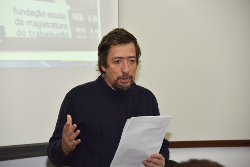Representando a Femargs, o desembargador Luiz Alberto de Vargas apresentou a palestrante convidada. O magistrado é vice-diretor de Cursos de Formação, Aperfeiçoamento e Especialização de Magistrados do Trabalho na instituição de ensino.