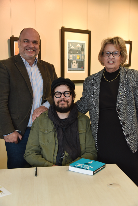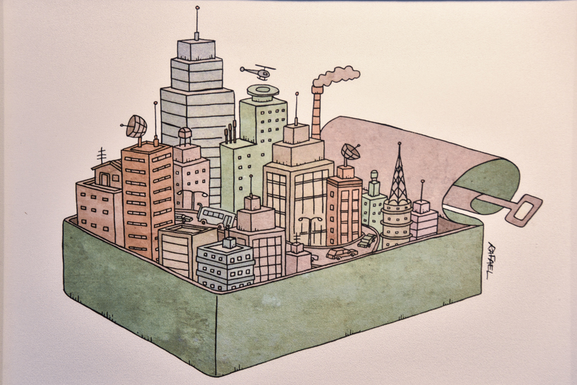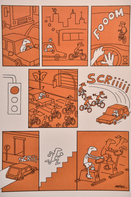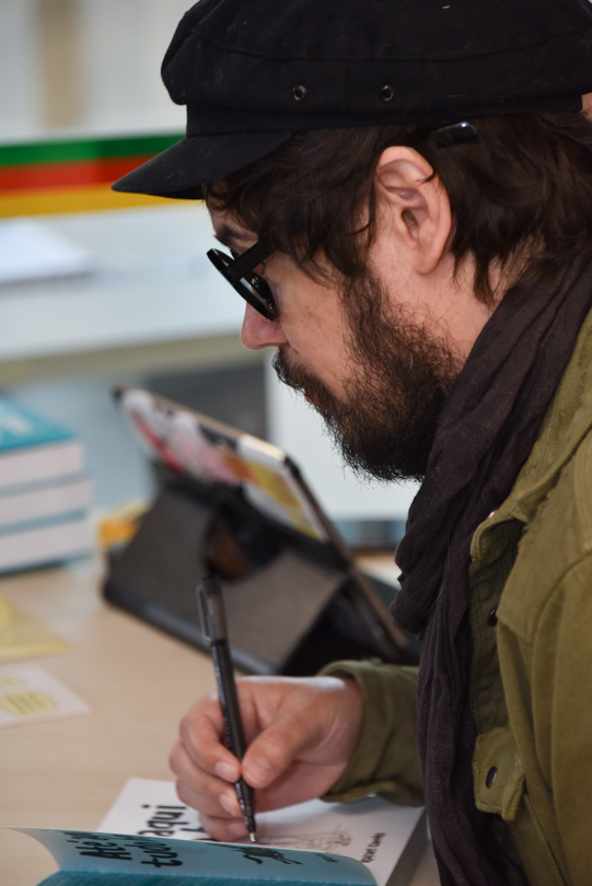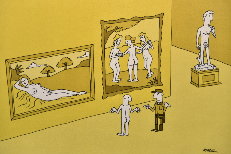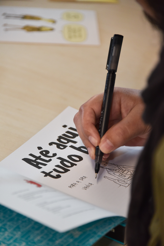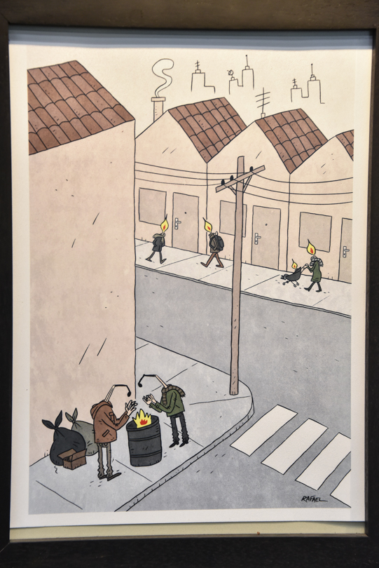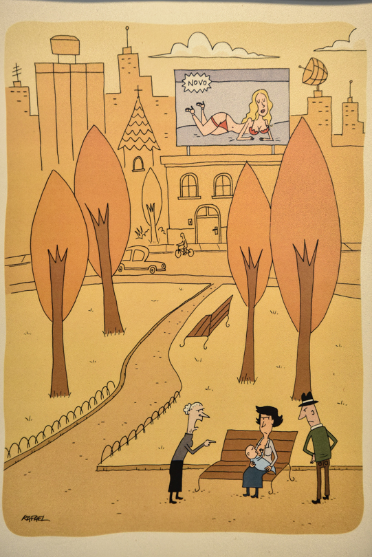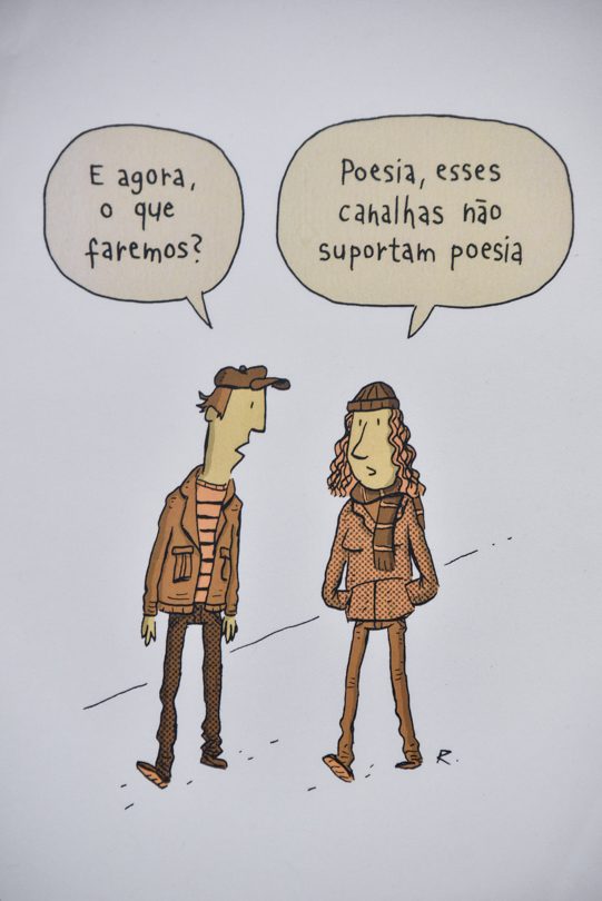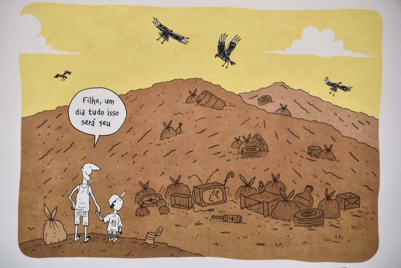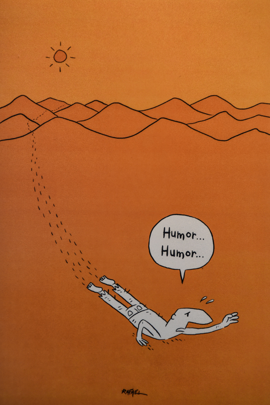 Em sua fala, Rafael agradeceu o convite para a exposição e refletiu sobre o papel que desempenha. “O cartum não é só para dar risada e divertir, é para fazer uma análise crítica do mundo”, observou. Rafael também fez comentários sobre os problemas da atual conjuntura brasileira. “Quando não há respeito à arte, não há respeito aos cidadãos”, lamentou. O artista também expressou sua satisfação por sua obra estar exposta em um local onde circula um público tão amplo. “É um espaço muito importante, que nos dá a chance de discutir nossa realidade e construir uma sociedade mais justa, por meio da arte, da crítica e do diálogo”, concluiu. Durante a inauguração da exposição, Rafael autografou seu livro “Até aqui tudo bem”, coletânea dos seus dez últimos anos de trabalho.