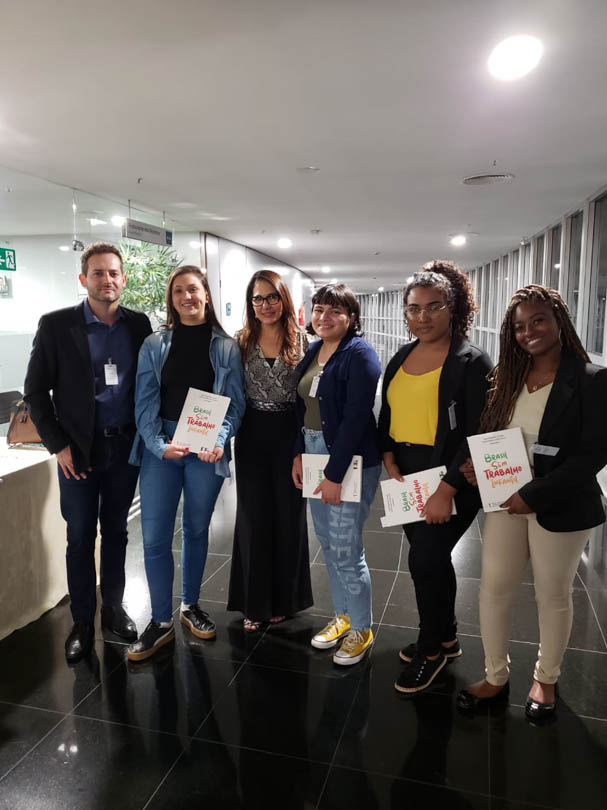 Quatro alunas da Comunidade Jurídico-Trabalhista do Projeto Pescar foram a Brasília falar da importância da iniciativa para Presidentes, Ouvidores e Diretores Gerais de todos os Tribunais Regionais do Trabalho (TRTs) do Brasil. A iniciativa ocorreu a convite da Presidente da 4ª Região (TRT-RS), desembargadora Vania Cunha Mattos, que incluiu a manifestação das estudantes em eventos realizados no Tribunal Superior do Trabalho (TST). As meninas se apresentaram na Reunião de Diretores Gerais da Justiça do Trabalho, acompanhadas pela Bárbara Burgardt Casaletti, Diretora-Geral do TRT4, na quarta-feira (20/11) e no encontro do Colégio de Presidentes e Corregedores do Trabalho (Coleprecor) que reuniu as autoridades máximas dos Tribunais do Trabalho do Brasil na sexta-feira 22/11.