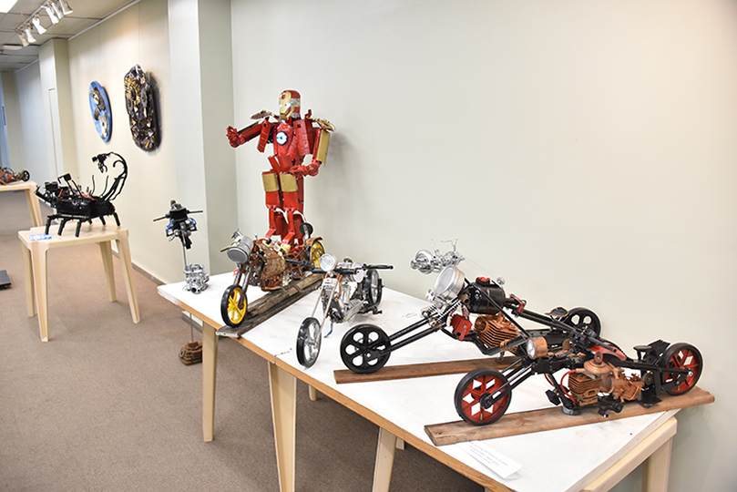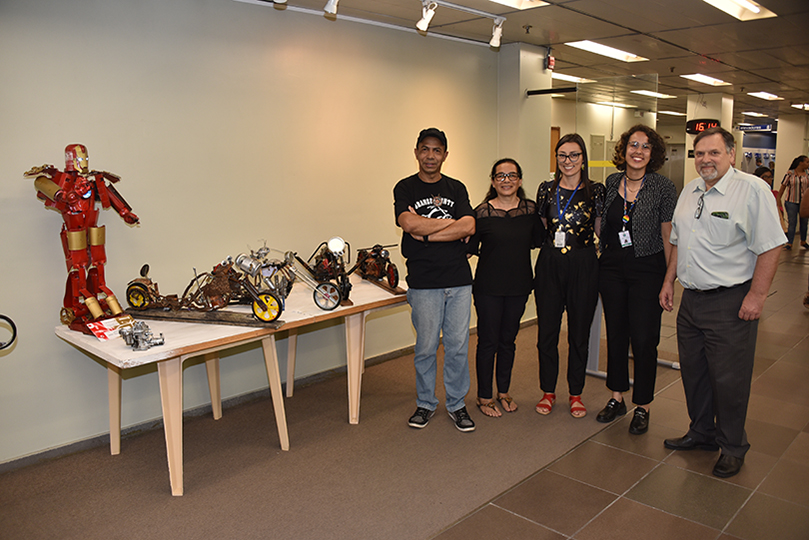 O público pode visitar a exposição "Sucata Revela a Arte" de segunda a sexta-feira, das 10 às 18h, até o dia 7 de janeiro. Na mostra, o escultor apresenta obras construídas a partir de sucata eletro-eletrônica, no intuito de reutilizar e dar um destino ecologicamente correto ao chamado lixo eletrônico.