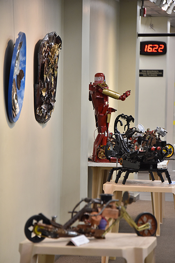 Exposições apresentam esculturas com sucatas e retrospectiva de atividades culturais do TRT-RS