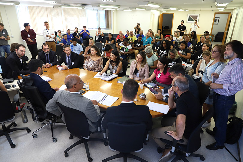 Entidades representativas de profissionais da saúde participaram de audiência com o Instituto Municipal de Estratégia de Saúde da Família (Imesf), na manhã desta quarta feira (11/3), na sede do Tribunal Regional do Trabalho da 4ª Região (TRT-RS), em Porto Alegre. A mediação foi conduzida pelo vice-presidente do Tribunal, desembargador Francisco Rossal de Araújo, e contou com a participação dos procuradores regionais do Ministério Público do Trabalho Paulo Eduardo Pinto de Queiroz e Carlos Carneiro Esteves Neto. Estiveram presentes representantes do Sindicato dos Agentes Comunitários de Saúde (Sindacs), da Associação dos Agentes Comunitários de Saúde de Porto Alegre e do Sindisaúde, além do Secretário da Saúde e presidente do Imesf, Pablo Stürmer, e o procurador do Município Carlos Rogério Guedes Pires.