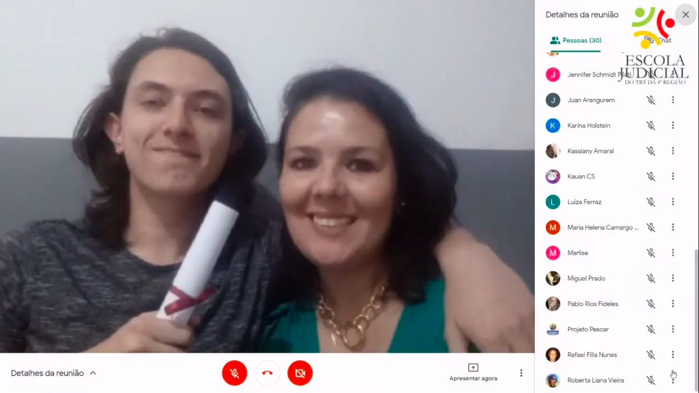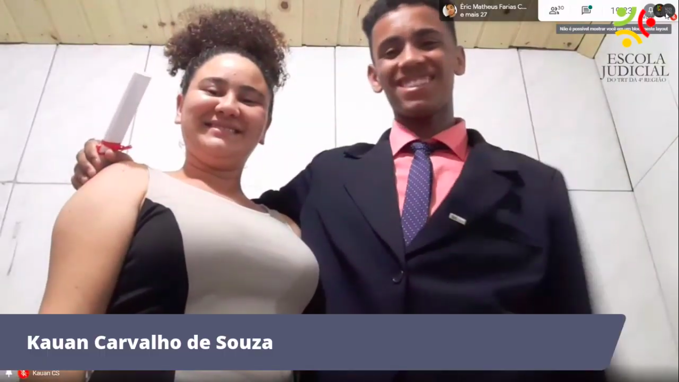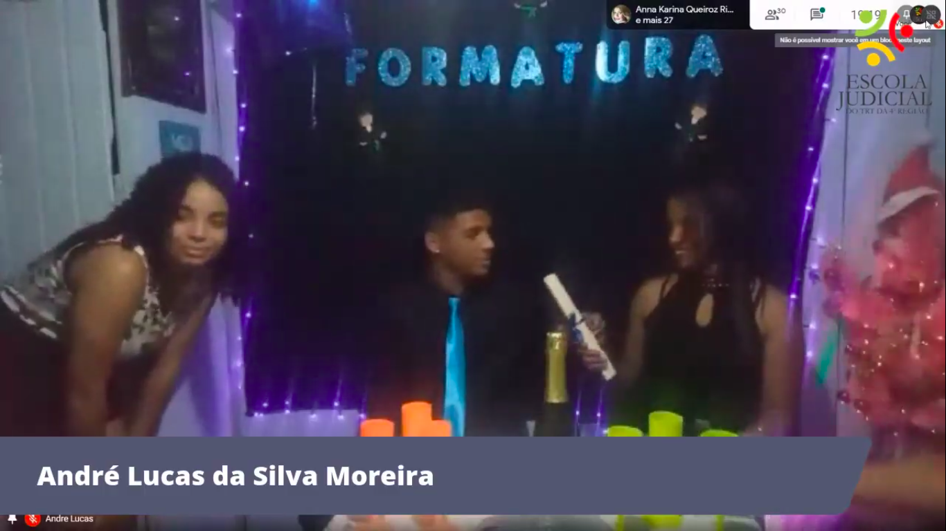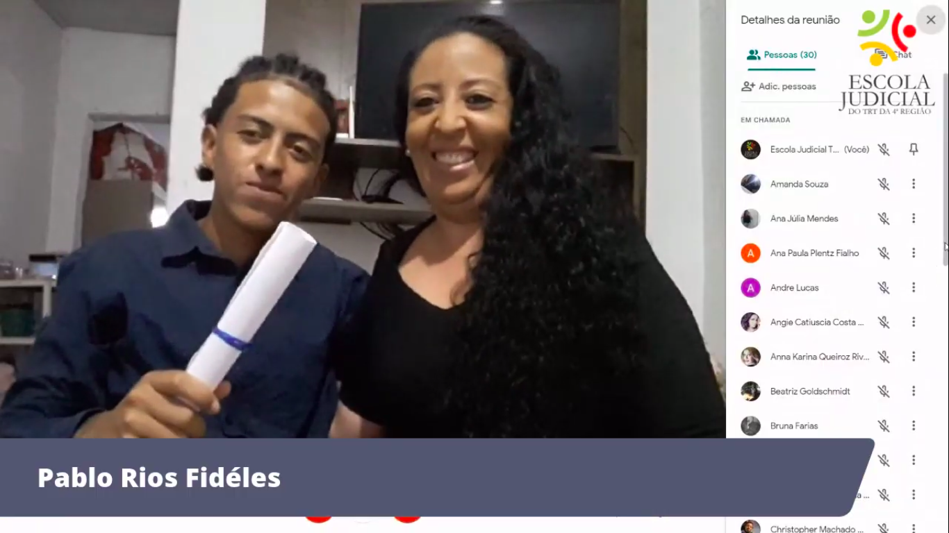 A sexta turma de alunos da unidade do Projeto Pescar da Comunidade Jurídico-Trabalhista de Porto Alegre/RS formou-se em solenidade telepresencial na noite dessa quinta-feira (10/12). O evento teve a participação de representantes das instituições integrantes do projeto, voluntários e familiares dos formandos, sendo transmitido pela Escola Judicial (EJud4) do Tribunal Regional do Trabalho da 4ª Região (TRT-RS) em seu canal no YouTube. O vídeo pode ser acessado aquiAbre em nova aba. A turma iniciou suas atividades em 12 de fevereiro. Os 15 jovens formandos são: