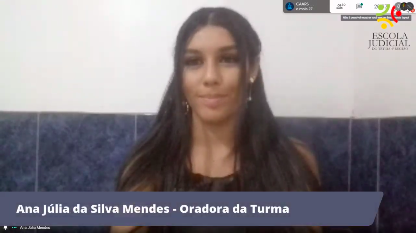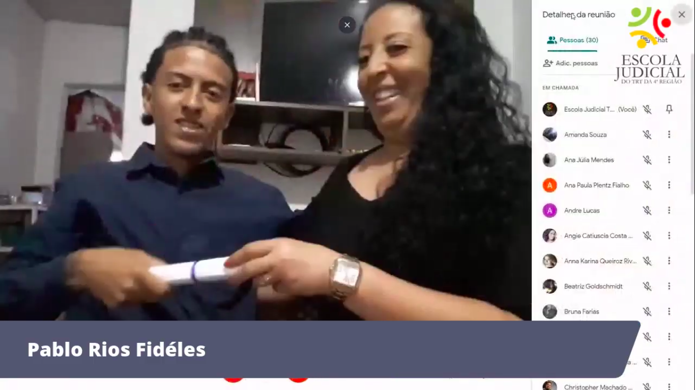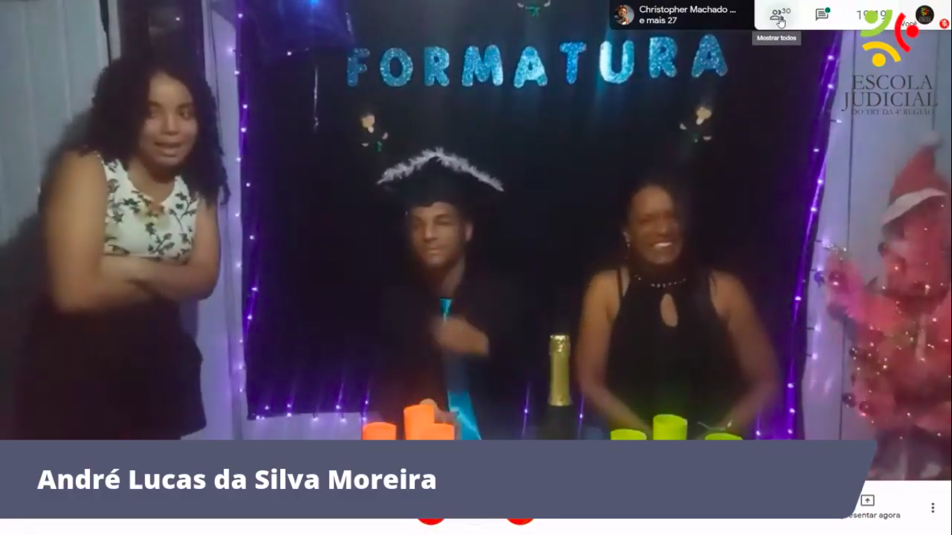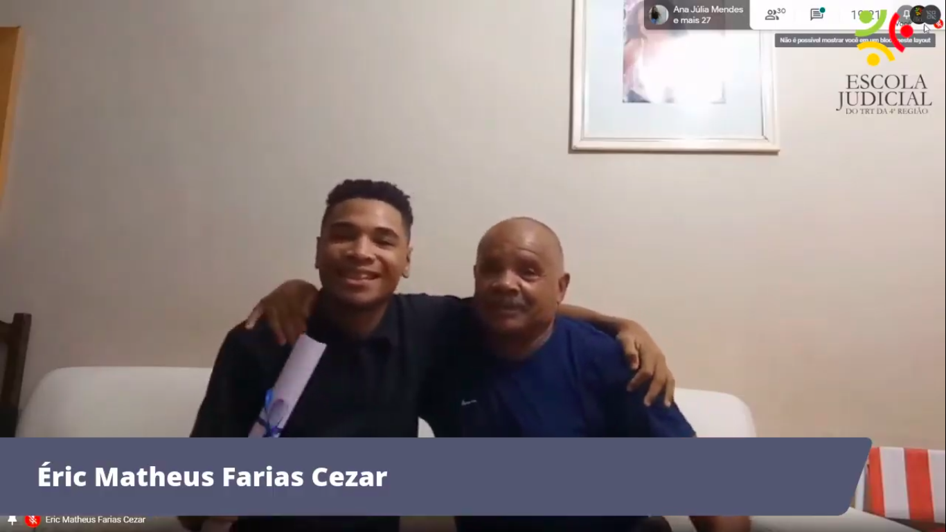 A sexta turma de alunos da unidade do Projeto Pescar da Comunidade Jurídico-Trabalhista de Porto Alegre/RS formou-se em solenidade telepresencial na noite dessa quinta-feira (10/12). O evento teve a participação de representantes das instituições integrantes do projeto, voluntários e familiares dos formandos, sendo transmitido pela Escola Judicial (EJud4) do Tribunal Regional do Trabalho da 4ª Região (TRT-RS) em seu canal no YouTube. O vídeo pode ser acessado aquiAbre em nova aba. A turma iniciou suas atividades em 12 de fevereiro. Os 15 jovens formandos são: