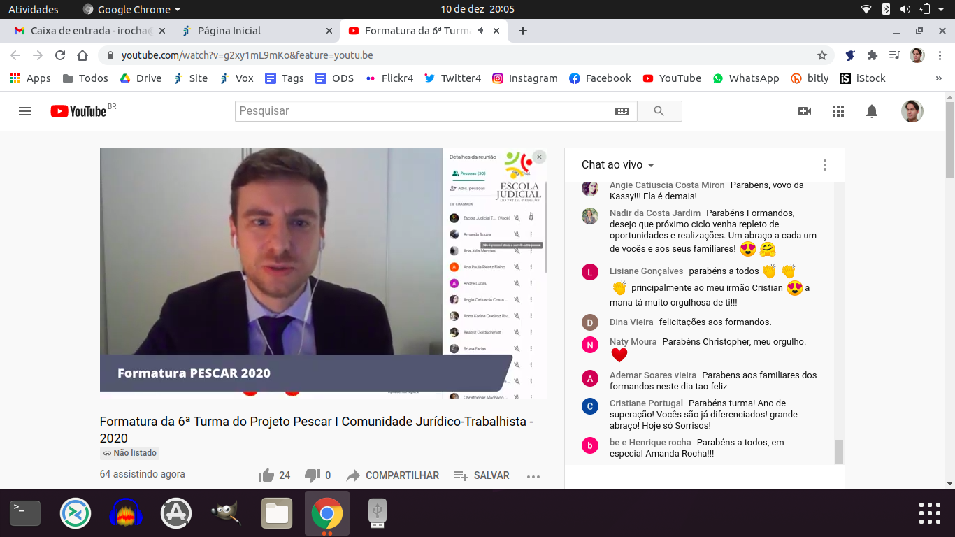 Formatura pelo Youtube: Sexta turma do Projeto Pescar da Comunidade Jurídico-Trabalhista celebra conclusão do curso