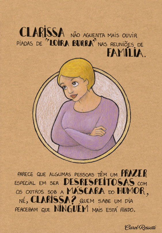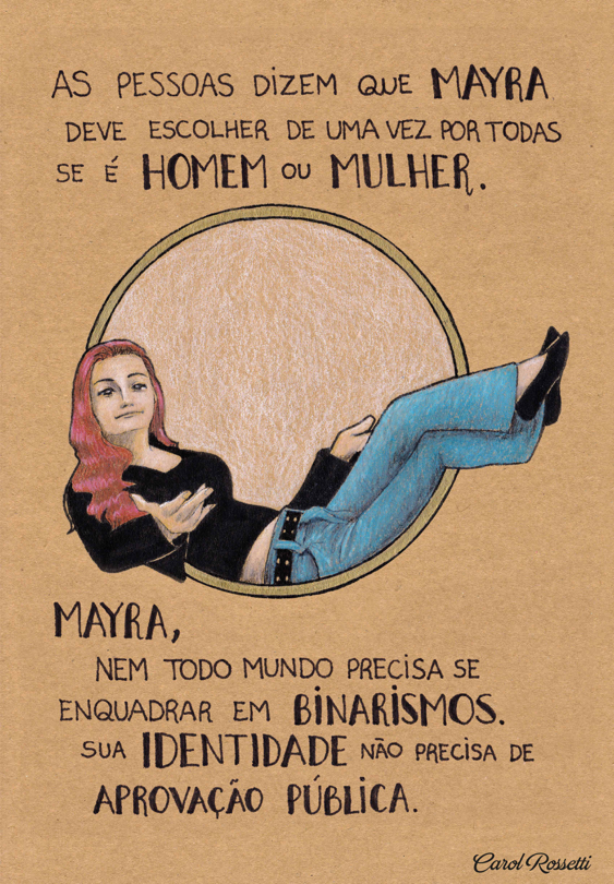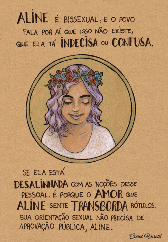 Carol Rossetti é quadrinista, ilustradora e designer de Belo Horizonte. Lançou os livros Mulheres (Sextante, 2015) e Cores (Independente, 2016), e agora está desenvolvendo sua primeira graphic novel Vento Norte. Participou de zines, coletivos e realizou projetos de ilustração e narrativas gráficas em parceria com diversas instituições nacionais e internacionais, como ONU, AWID, Plan International, Skol e Unilever. Em 2018, foi co-curadora do FIQ – Festival Internacional de Quadrinhos e professora fixa no curso de formação de quadrinistas FIQ Jovem. É também sócia do estúdio Café com Chocolate Design e dá aulas de aquarela e quadrinhos. Contato: carolrossettidesign@gmail.com.