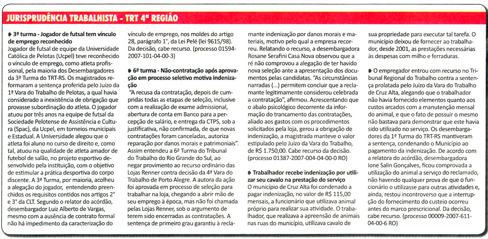 25.11.2008Jurisprudência Trabalhista - TRT 4ª Região 25.11.2008Jurisprudência Trabalhista - TRT 4ª Região