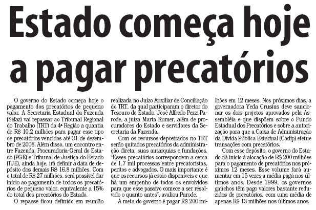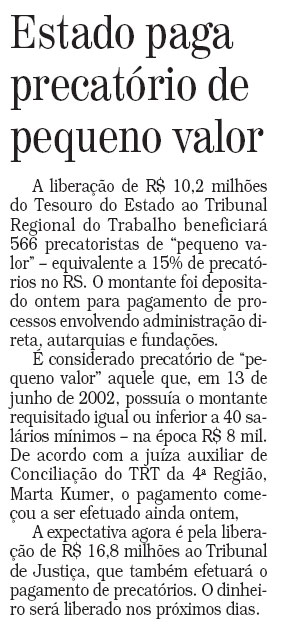 16.12.2008Correio do Povo: Estado paga precatório de pequeno valor -