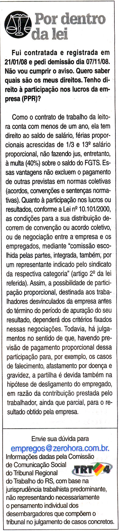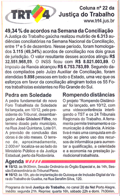 15.12.2008Correio do Povo: Coluna n° 22 da Justiça do Trabalho