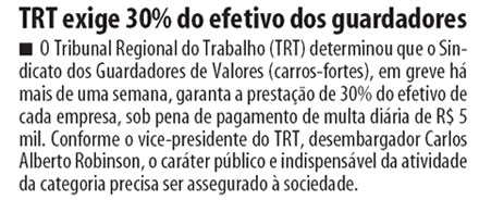 18.11.2008Correio do Povo: TRT exige 30% do efetivo dos guardadores 18.11.2008Correio do Povo: TRT exige 30% do efetivo dos guardadores