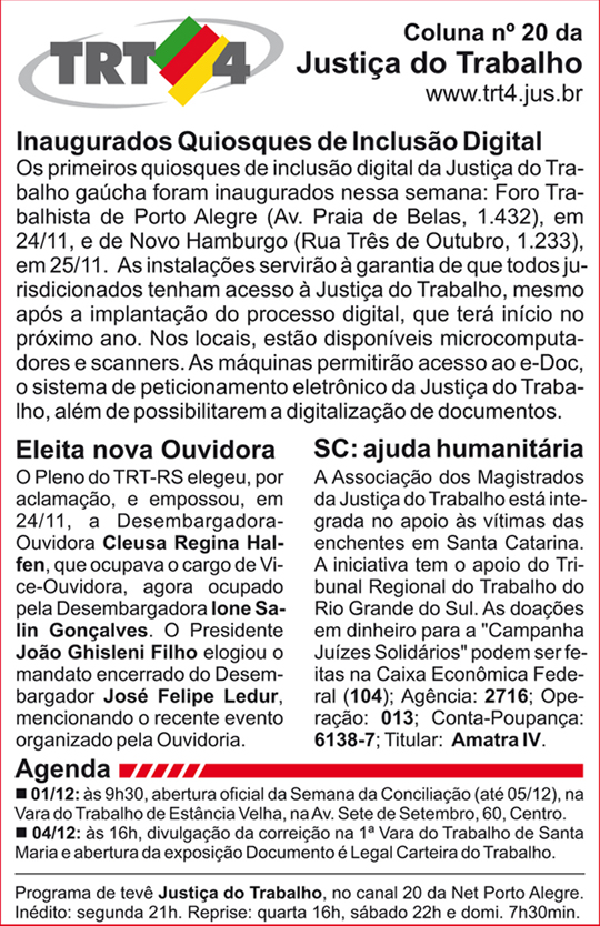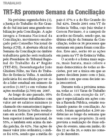 01.12.2008Correio do Povo: Coluna n° 20 da Justiça do Trabalho -